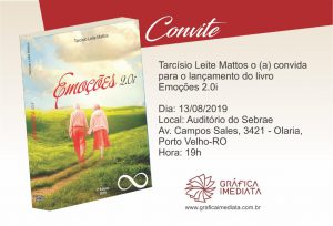 O livro Emoções 2.0i, de autoria de Tarcísio de Leite Mattos, será lançado hoje (13), às 19h, no auditório do Sebrae, em Porto Velho. O recurso arrecadado com a venda do livro será destinado para a criação e manutenção do Instituto de Acolhimento de Idosos Abandonados (IAIA).