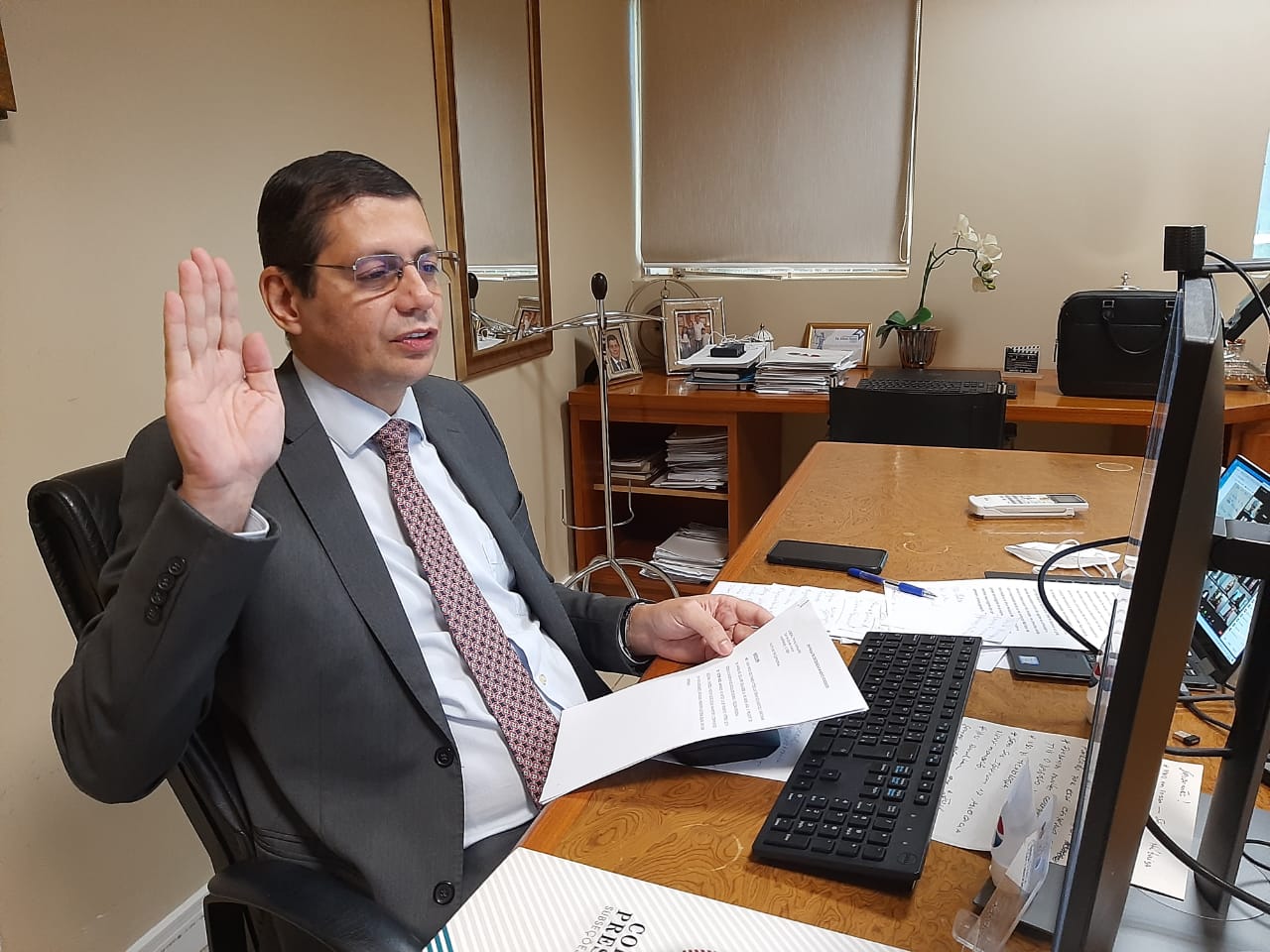 Em face dos tempos difíceis vividos pela humanidade e do importante papel social que desempenha a advocacia, o presidente da OAB Rondônia, Elton Assis, conclamou um minuto de silêncio em respeito a todas as famílias enlutadas que perderam parentes e amigos por conta da Covid-19 e em homenagem a todos os profissionais de saúde, que travam uma batalha diária nessa guerra contra o coronavírus. Ao todo, prestaram compromisso 57 profissionais inscritos em Porto Velho e nas Subseções da OAB de Ariquemes, Cacoal, Jaru, Ji-Paraná, Ouro Preto do Oeste, Presidente Medici, Rolim de Moura e Vilhena.
