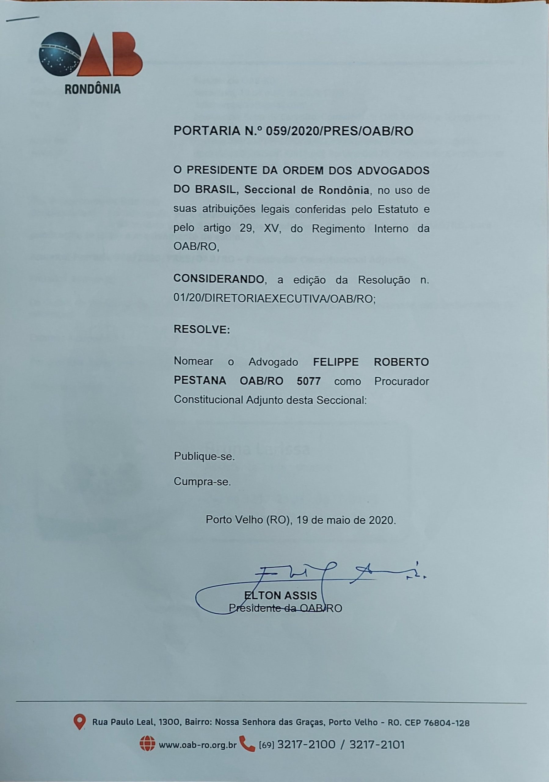 “A implantação da Procuradoria Constitucional no âmbito da OAB Rondônia é um marco histórico e inédito na Seccional, notadamente pelo fato de que somos legitimados para o controle concentrado de constitucionalidade”, descreveu o presidente Elton José Assis.